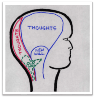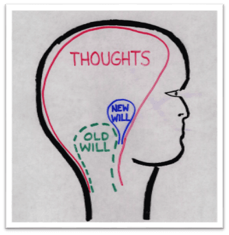 It is similar to the mind we saw previously, but notice a new will, God’s will, appears along with the old will. The old will is shown with a dotted line because from God’s perspective, it’s dead. He isn’t dealing with our old will. He’s dealing with our new will. The new will is what God has created in us.