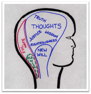 What exactly is this new will? It is thoughts, paths and patterns of thought that guide and control our actions, our response to stimuli, our behavior, just as the old will did before. You are what you think. When we first desire to approach God—to be pure, holy and to do His will—that desire marks the beginning of this new will. When God accepts this new will, we are promised everlasting life if it grows and develops properly.