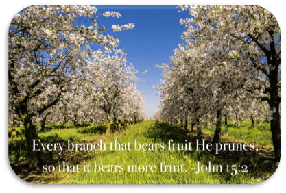 If God’s Holy Spirit is working in us, we will produce “fruit” as described by Galatians 5:22,23 that others can see. “But the fruit of the spirit is love, joy, peace, patience, kindness, goodness, faithfulness, gentleness and self-control.” There is also something that will happen to us that others may not see. It is crucial to developing even more fruit, even though it can cause some of the most painful experiences in our lives that are dedicated to the Lord. That is pruning. Pruning does not feel good, and yet we know it is God’s will. “Amen—so be it.”