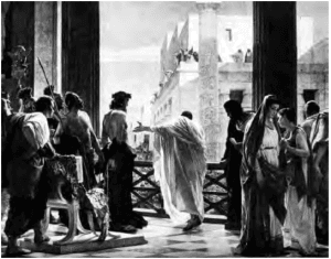 The Jews had been guilty of violating this law not long before the time of our lesson, as recorded in John 19:14, 15. On that occasion Pilate brought Jesus before them, and said: