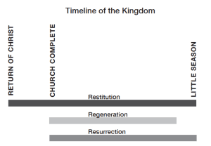 These then are the Three R’s of the Kingdom: Restitution, Regeneration, and Resurrection each describing a different aspect of the work and overlapping in their time frame.