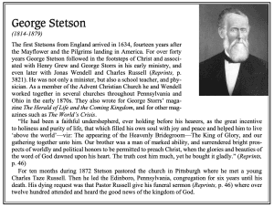 Jonas Wendell was the preacher of the day and, while attracted to his thoughts on the second advent, Charles Russell did not believe that the Lord was coming to burn up the world. He reasoned that “if Christ’s coming was to end probation and bring irrevocable ruin upon ninety-nine of a hundred of mankind, then it could scarcely be considered desirable, neither could we pray with proper spirit, ‘Come, Lord Jesus, Come quickly.’ ” As a result he joined in organizing a Bible study class in Allegheny, Pennsylvania.