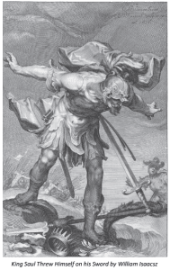 The next day the battle raged, and the army of the Israelites was worsted, and Saul and his three sons were slain, besides many of his troops. Our lesson tells of the suicide of Saul.