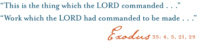 As Israel left from Egypt in the Exodus, the Egyptians gave their former Hebrew slaves great quantities of gold and silver ornaments, including copper and jewelry. All this wealth was then donated to the construction of the Tabernacle. Flax was supplied for making the fine quality linen used throughout. The exquisite woods used in construction were obtained in the Arabian Peninsula. God gave special skills to the craftsman who joyfully created the furniture and beautiful tapestries, as well as all the items needed to carry out the worship of God.