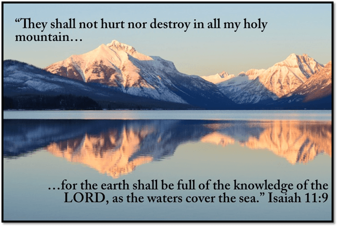 Isaiah 11:9 tells us, “They shall not hurt nor destroy in all my holy mountain: for the earth shall be full of the knowledge of the LORD, as the waters cover the sea.”
