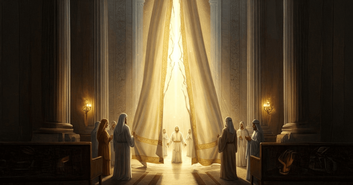 The two rooms, the Holy and the Most Holy, were separated by a curtain, also called a veil. In Herod’s temple this veil was approximately sixty feet long and thirty feet wide, and four to five inches thick. That this massive veil split at the time of Jesus’ death demonstrates that it was God’s power that tore it and leads us to question why.