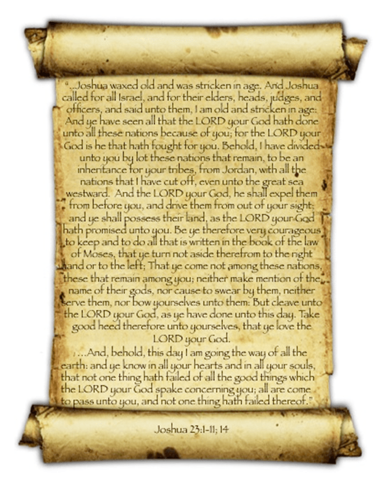 Let’s move on to the parting words of Joshua. They’re found in Joshua the 23rd chapter. Joshua had a sterling, almost flawless, character.
