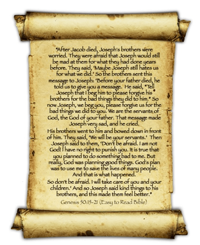 Joseph cried when he read the letter from his brothers, but what touched him so much? Perhaps it was because his father had just died. Notice that they didn’t say, “our father asked us to give you a message.” They said, “Your father asked us to give you a message.” You can see they were using his deep love for Jacob to gain Joseph’s sympathy. But, in addition to that, maybe he was moved because after all that he had done for them, they still didn’t trust him.