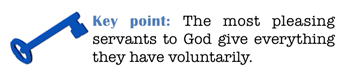 In Exodus 35, God gives instructions for the building of the tabernacle (a temporary place for the Israelites to commune with God). All the materials for the construction of the tabernacle were to come from the Israelites. Here, He makes it clear that a spirit of willingness was essential: Vs. 5 “Take ye from among you an offering unto the Lord: whosoever is of a willing heart, let him bring it, an offering for the Lord…”