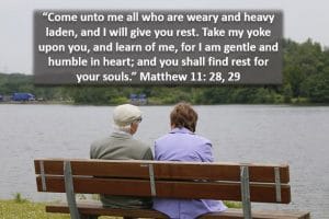 Remember what Jesus said in Matthew 11:28-29, “Come to me, all who are weary and heavy laden, and I will give you rest. Take my yoke upon you, and learn from me, for I am gentle and humble in heart; and you shall find rest for your souls.”