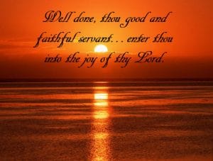 Likewise, the words of Jesus in Matthew 25:21, “Well done, thou good and faithful servant…enter thou into the joy of thy Lord.”