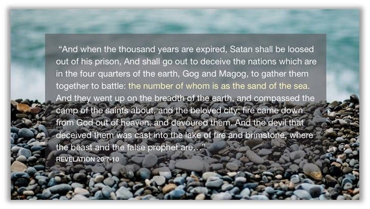 But, that does not mean that everyone who has ever lived will continue on after the thousand years. Revelation 20:7,8 tells us: “As the sand of the sea,” or, in other words, no one knows how many.