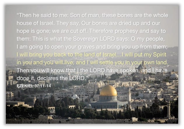 God loves the nation of Israel. He told the Jews that they would get all of the land promised to them centuries earlier. In fact, there is a prophecy about that in Ezekiel 37:1-10. This is the story of Israel. They were cast off, scattered among the nations, and they had no more rights to the land nor status among the nations. Nationally speaking, they were nothing but a valley of dead, dry bones. We know that this prophecy is about Israel as seen in verses 11-14.