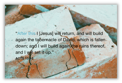 In Acts 15:16 Paul says After this. We ask, after what? Verse 14 says, “Simeon [Peter] hath declared how God at the first did visit the Gentiles, to take out of them a people for his name.” After this process has been completed; when the bride of Christ (those few who truly followed Jesus) is complete, then our Lord will rebuild the tabernacle of David.