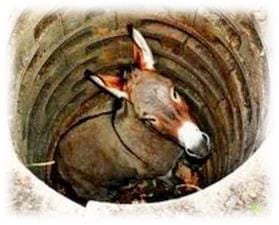 Years ago, there was a farmer whose old donkey fell down into a well. The farmer invited all of his neighbors to come over and help him cover up the well as the donkey was old and not of much use anymore. They began to shovel dirt into the well. At first the donkey cried horribly, but then he quieted down. The farmer finally looked down the well. With each shovel of dirt that hit his back, the donkey shook it off and took a step up onto the pile of dirt. Pretty soon, the donkey stepped up over the edge of     the well and trotted off!