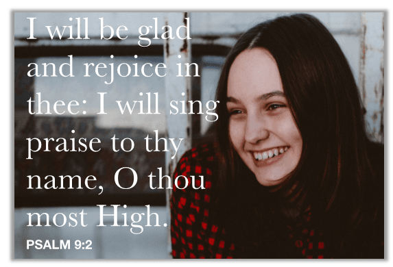 Reading many of the Psalms, we see David pouring out his heart to the Lord. He composed songs that echoed his deepest feelings. He was indeed a man after God’s own heart. He wrote, “I will be glad and rejoice in thee: I will sing praise to thy name, O thou most High.” Psalm 9:2